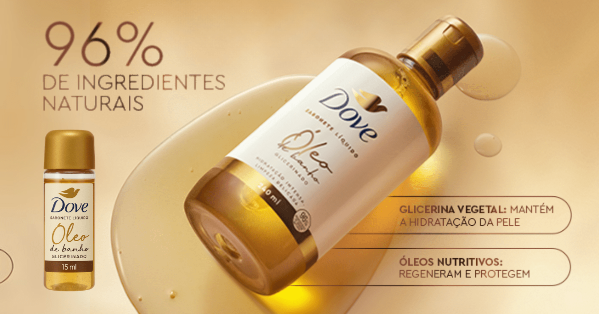 A Dove está oferecendo uma oportunidade exclusiva para quem gosta de cuidar da pele com produtos de alta qualidade. A marca liberou amostras grátis do novo Óleo de Banho Glicerinado Dove, que podem ser resgatadas em unidades participantes das farmácias Raia e Drogasil através do programa “Primeira Caixa“.