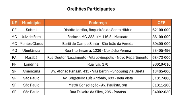 De acordo com o regulamento divulgado pela rede, a ação com os orelhões será realizada em cidades dos estados de Minas Gerais, São Paulo, Pará, Paraná e Ceará. Entre os municípios participantes estão Juiz de Fora, Montes Claros, Uberlândia, Londrina, Americana, Marabá, Sobral e vários pontos da cidade de São Paulo, incluindo regiões da Avenida Paulista.