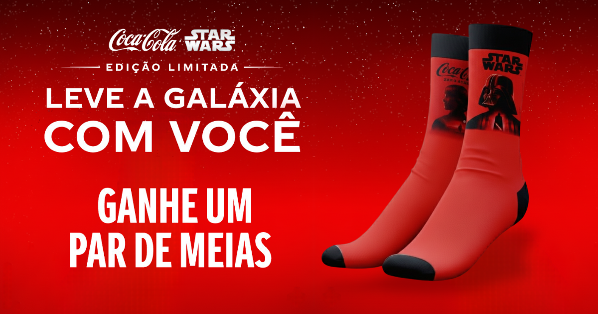 A Coca-Cola e a rede Cine Araújo uniram forças para lançar uma promoção que vai empolgar fãs de Star Wars e apaixonados por cinema: a cada combo promocional adquirido, o público ganha um par de meias temáticas inspiradas na icônica franquia. A ação, que acontece em salas selecionadas da rede, combina o melhor do entretenimento com o encanto dos brindes colecionáveis — uma verdadeira celebração da cultura pop.