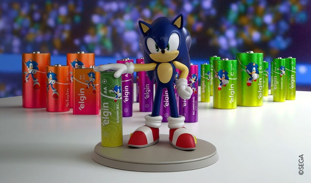 A parceria entre a Elgin e a SEGA teve início em novembro de 2023 e permanece ativa até hoje. Desde então, a colaboração resultou em uma linha exclusiva de pilhas comuns, alcalinas e recarregáveis estampadas com o personagem. A estratégia busca diferenciar o portfólio no ponto de venda e fortalecer a conexão emocional com o público gamer e com consumidores que carregam memórias afetivas do personagem.