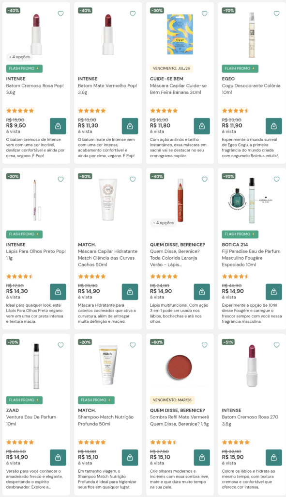 O Boticário iniciou uma nova edição da Flash Promo, sua oferta relâmpago que traz descontos de até 70% em diversos produtos do catálogo — incluindo fragrâncias, maquiagens e itens de cuidados pessoais. A ação é por tempo limitado e oferece uma oportunidade perfeita para quem quer conhecer os lançamentos da marca ou garantir seus favoritos com preços irresistíveis.