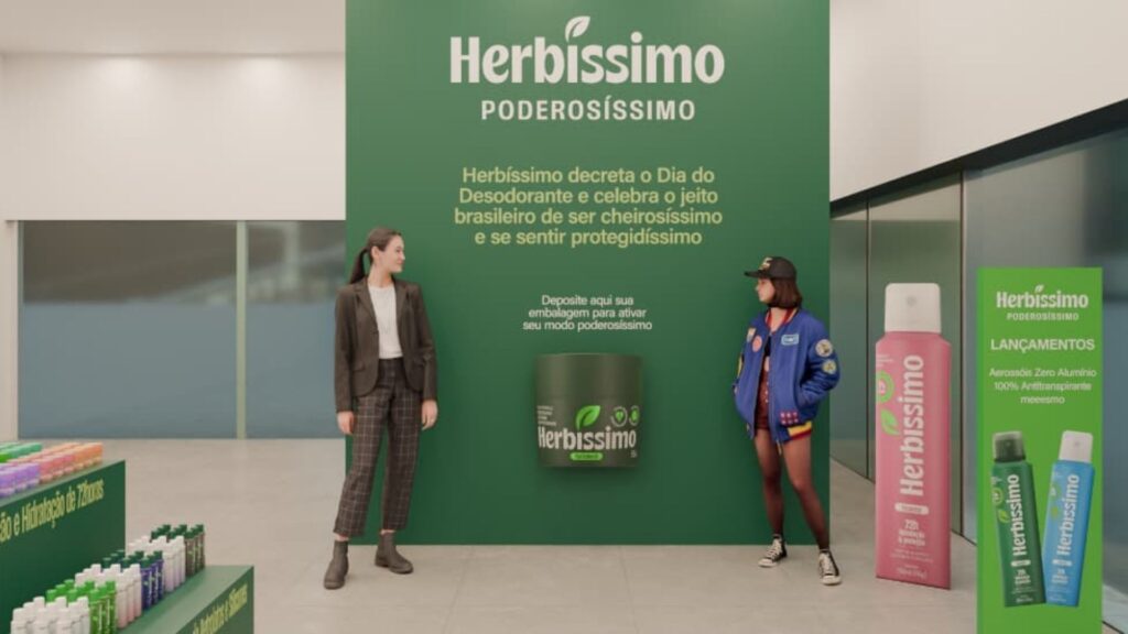 A campanha ganha ainda mais força com o convite direto ao público: “Que tal trocar seu desodorante antigo por um Herbíssimo?”. A mecânica é acessível e pensada para incentivar a participação: basta levar um desodorante usado de qualquer marca e realizar a troca por um item novinho da linha Zero Alumínio, reforçando o compromisso da marca com inovação e novas tecnologias voltadas ao cuidado diário.