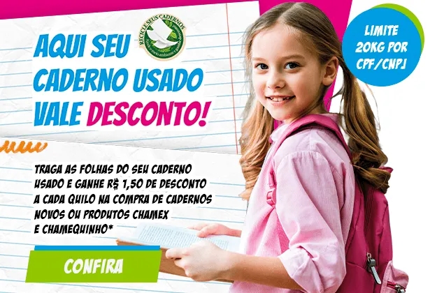 A mecânica é simples: basta levar folhas de cadernos ou fichários usados até uma loja Kalunga participante. A cada quilo de papel entregue, o cliente recebe R$ 1,50 em desconto, que pode ser utilizado na compra de cadernos novos ou em produtos das linhas Chamex e Chamequinho, conhecidas pela variedade e qualidade.