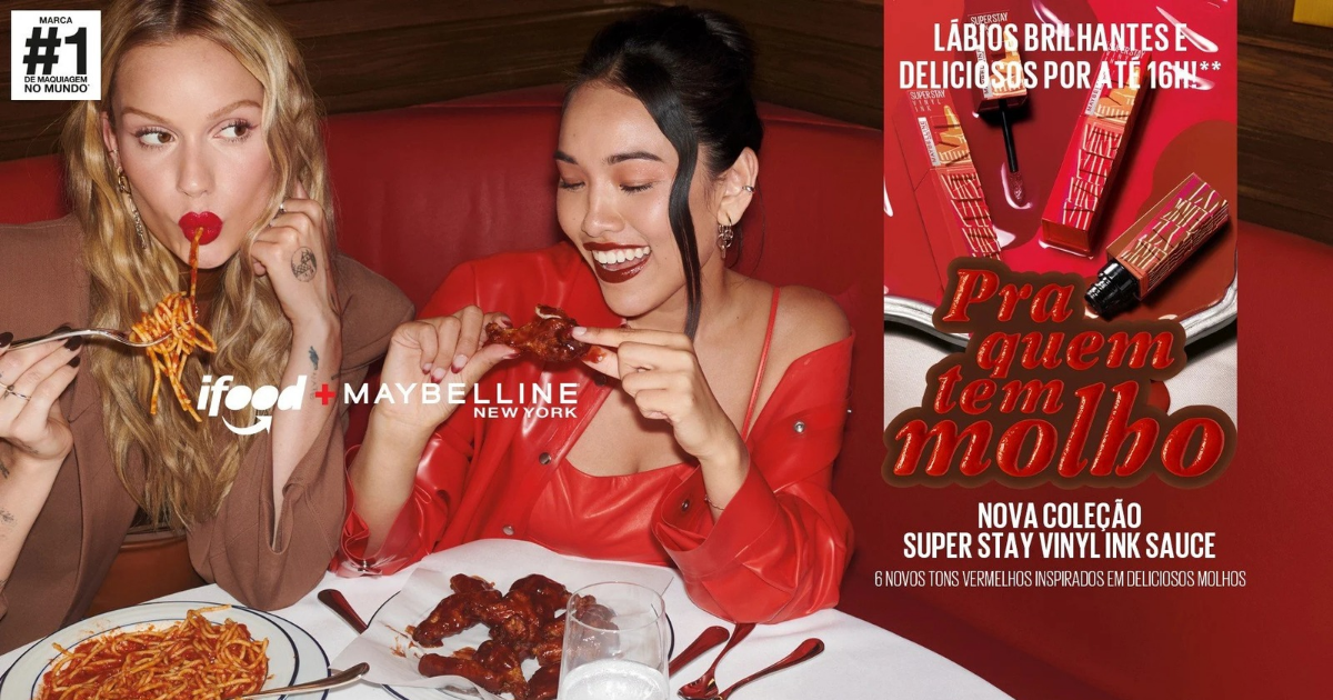 O iFood e a Maybelline New York realizam uma colaboração surpreendente que une dois universos irresistíveis: beleza e gastronomia. A parceria inédita traz a linha de batons Super Stay Vinyl Ink Sauce, inspirada em molhos icônicos, diretamente para o aplicativo do iFood, na categoria Farmácia. E para tornar essa experiência ainda mais especial, durante todo o mês de outubro, amostras grátis da marca serão distribuídas de forma aleatória junto a pedidos de comida em restaurantes parceiros.