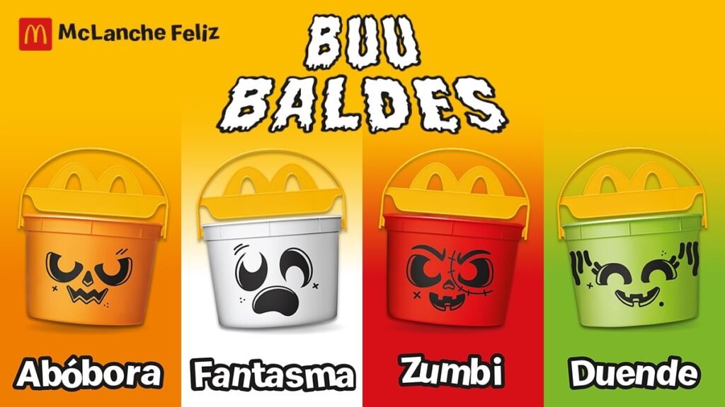 A temporada de Halloween promete ser ainda mais divertida com o retorno dos icônicos Buu Baldes do McDonald’s! A partir de 7 de outubro, os baldes temáticos voltam a acompanhar o McLanche Feliz, em uma edição especial inspirada no universo do Dia das Bruxas. São quatro novos modelos exclusivos para colecionar: Fantasma, Abóbora, Duende e Zumbi.