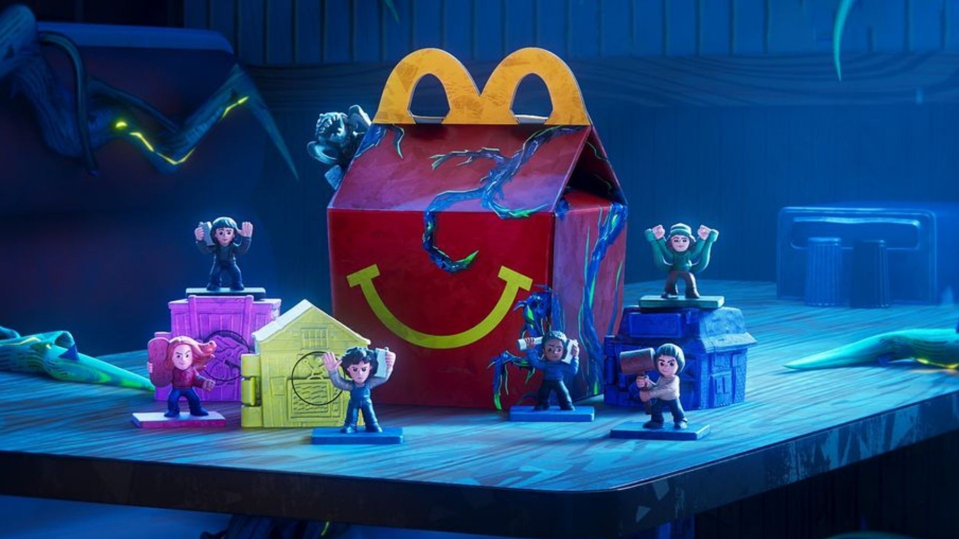 Mas a experiência não para nos brinquedos. O McLanche Feliz temático chega com embalagens exclusivas inspiradas na estética da animação, com elementos gráficos que remetem diretamente aos anos 80 e ao clima enigmático da série. Em algumas versões, os detalhes visuais trazem até efeitos especiais que tornam o momento ainda mais imersivo.