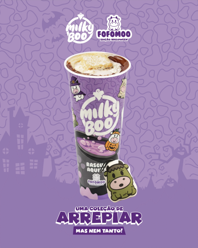Disponível apenas nas versões de 700 ml, o Milky Boo pode ser pedido com qualquer sabor do cardápio da Milky Moo, que inclui opções clássicas e premium. Cada copo acompanha um FofoMoo colecionável e custa R$ 49,90, unindo sabor, criatividade e uma experiência única. Segundo a marca, a campanha segue até 31 de outubro de 2025, nas unidades participantes em todo o país — com exceção dos pedidos via delivery ou produtos alcoólicos e premium.