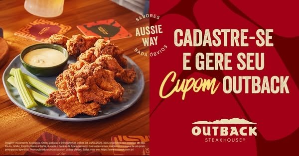 O Outback Steakhouse está com uma ação especial que promete deixar qualquer visita ainda mais saborosa. Clientes de regiões selecionadas podem garantir uma Kookaburra Wings grátis, um dos aperitivos mais icônicos da casa, mediante a geração de um cupom no site oficial e a apresentação em um restaurante participante, na compra de um prato principal ou aperitivo.