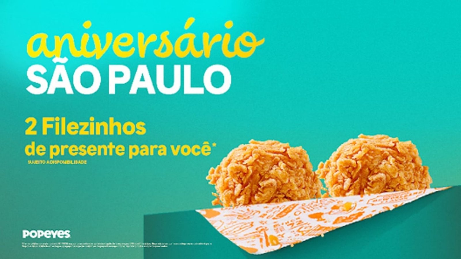 Popeyes celebra o 472° aniversário de São Paulo com filezinhos grátis; ação também terá ofertas especiais para clientes