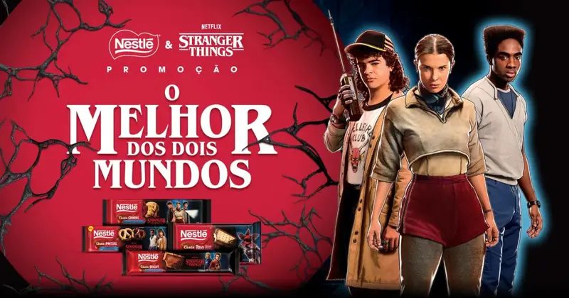 A Nestlé anunciou uma parceria inédita com a Netflix para celebrar a última temporada de Stranger Things, uma das produções mais icônicas do streaming. A colaboração envolve produtos licenciados da linha ChocoBakery, embalagens temáticas, ativações em pontos de venda e uma promoção nacional que promete agitar os fãs da série e os amantes de chocolate: “O Melhor dos Dois Mundos”.