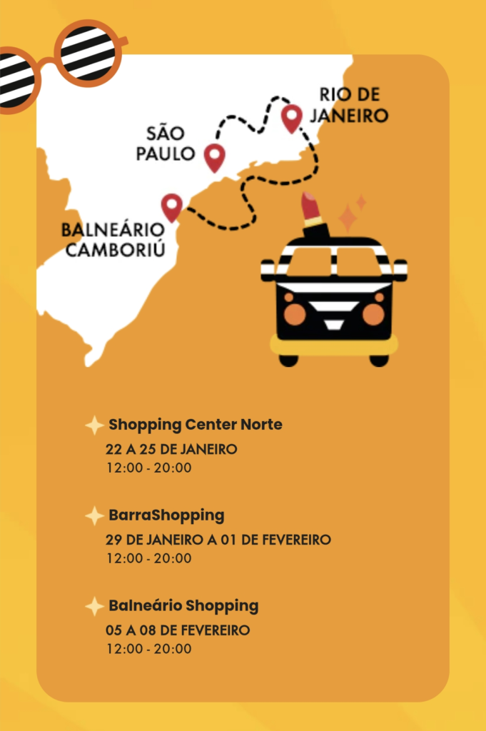 Com identidade visual inspirada no clima do verão, a arena reúne estações dedicadas a maquiagem, fragrâncias e skincare, permitindo que o público experimente produtos icônicos e conheça novidades do portfólio da rede de forma prática e orientada.