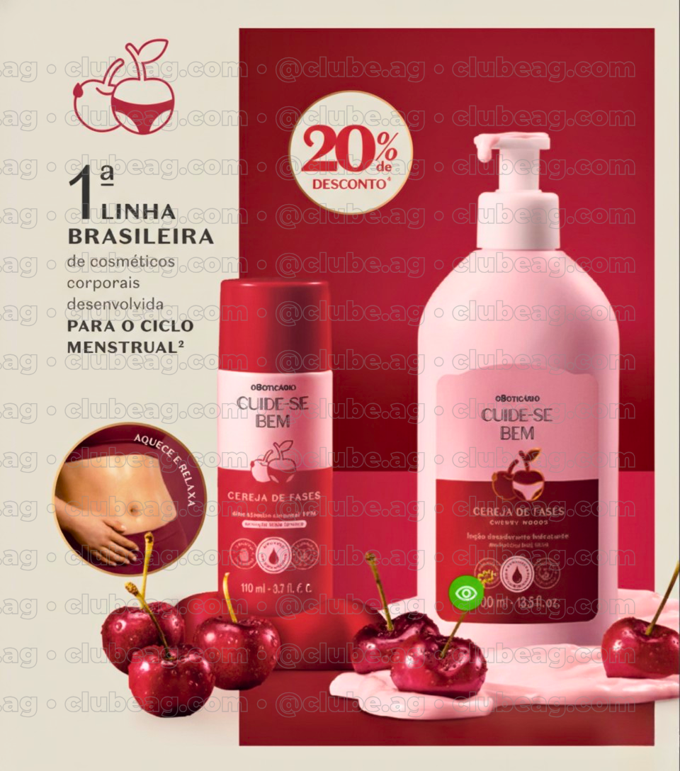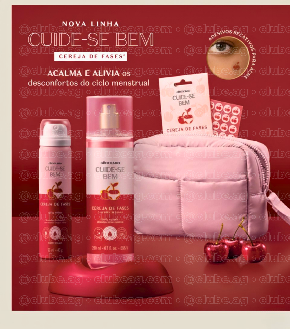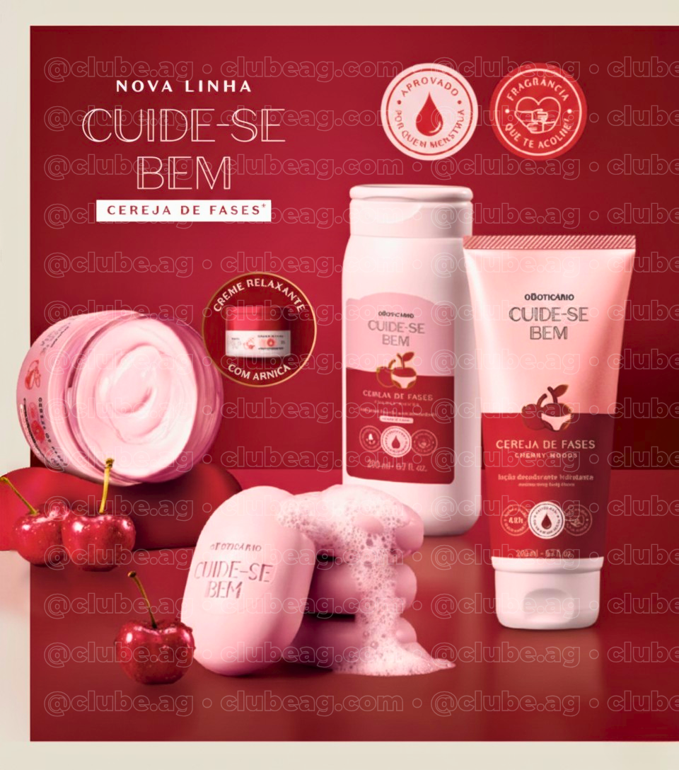 A novidade é a linha Cuide-se Bem Cereja de Fases, apresentada como a primeira linha brasileira de cosméticos corporais desenvolvida especialmente para o ciclo menstrual. A proposta é acompanhar as diferentes fases do corpo feminino, unindo autocuidado, bem-estar e fragrância delicada, com o característico cheirinho de cereja que já é sucesso entre os consumidores da marca.