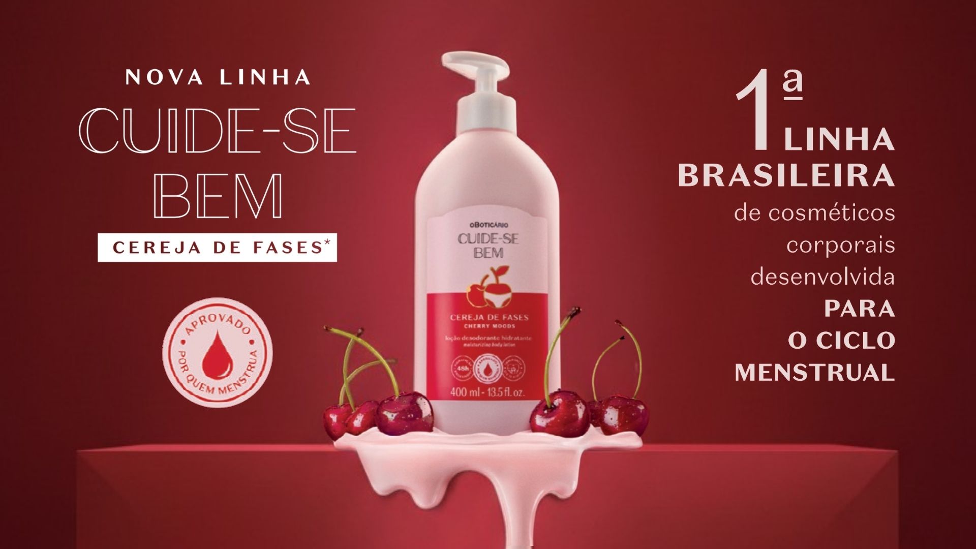 A grande novidade será a linha Cuide-se Bem Cereja de Fases, apresentada como a primeira linha brasileira de cosméticos corporais desenvolvida especialmente para o ciclo menstrual. A proposta é acompanhar as diferentes fases do corpo feminino, combinando autocuidado, bem-estar e sensorialidade, com o famoso cheirinho de cereja que já se tornou um dos queridinhos do público consumidor da marca.