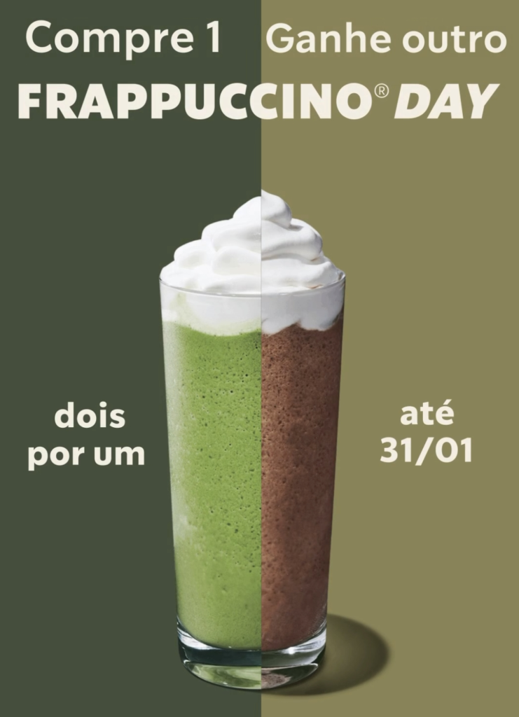 A Starbucks Brasil promove mais uma edição do Frappuccino Day, ação que já se tornou um dos momentos promocionais mais aguardados pelos consumidores da marca. Durante a campanha, o público pode aproveitar a oferta 2 por 1 em Frappuccinos, levando duas bebidas pelo preço de uma. A iniciativa acontece entre os dias 29 e 31 de janeiro, exclusivamente nas lojas físicas da rede, e tem gerado grande repercussão nas redes sociais, além de aumento significativo no fluxo de clientes.